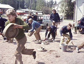Palokunnan nuoriso-osaston harjoittelua, 1970-luvun alku
